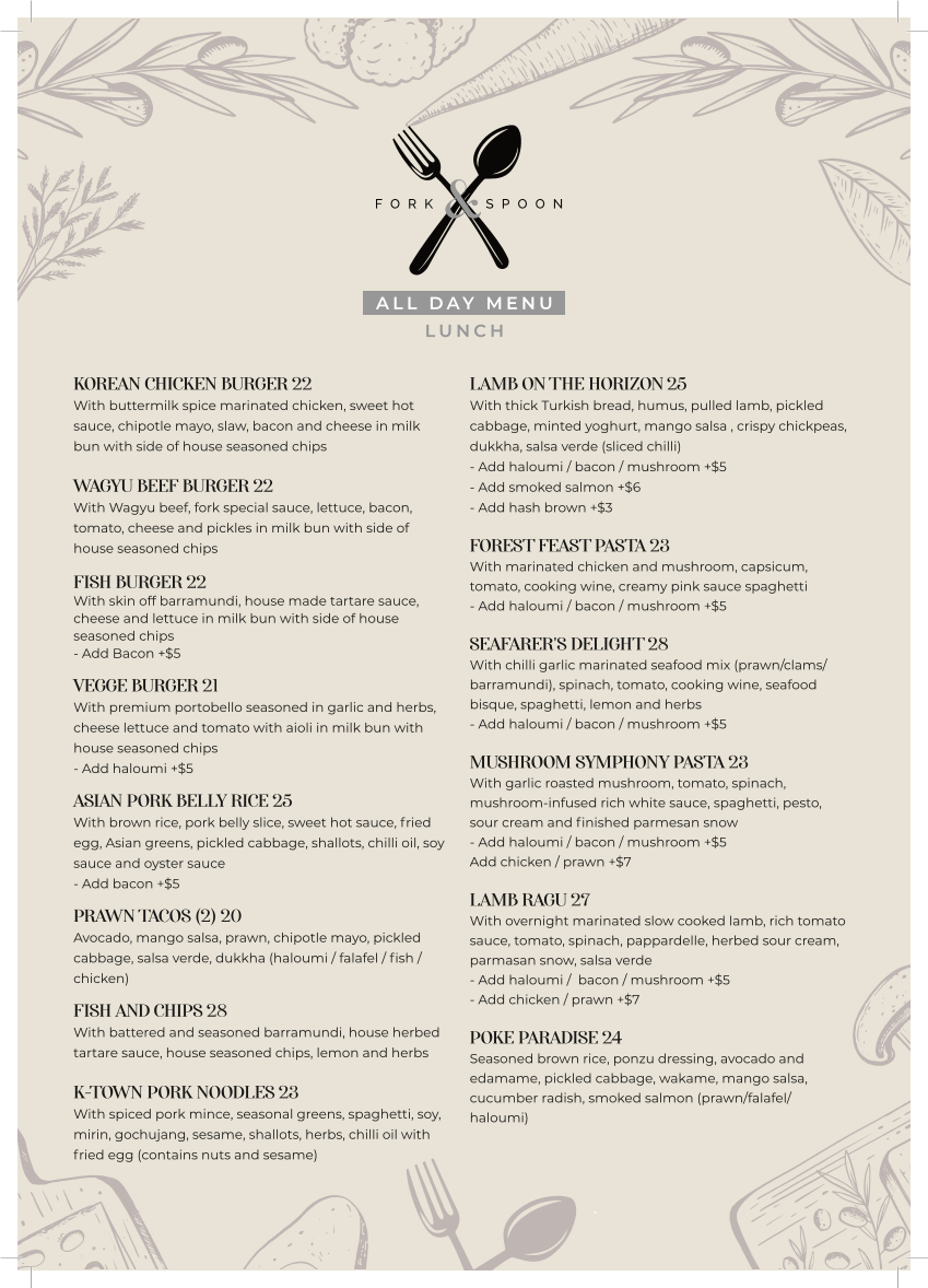 At Fork & Spoon, you're in for a treat with a menu that combines fresh, vibrant flavors and comforting favorites. Whether you're popping in for a quick bite or settling in for a leisurely meal, this restaurant offers a little something for everyone. From classic dishes with a twist to inventive new options, every plate is carefully crafted to satisfy your cravings. The Fork & Spoon Menu brings together seasonal ingredients, local produce, and global inspiration, all served in a cozy, welcoming atmosphere. As you glance through the offerings, you'll discover a range of options, from hearty mains to light and refreshing salads, each thoughtfully designed to provide a satisfying experience. With its inviting vibe and diverse selection, this menu promises to please your palate every time.